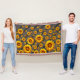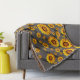 Schöne gelbe Blumen auf grauen, schwarzen Streifen Decke