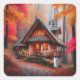 Schöne gemütliche Hütte mit Herbstblättern Quadratischer Aufkleber