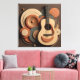 Atemberaubende 3D boho abstrakte Wandkunst mit zentraler Akustikgitarre in weichem Rosa, gedämpftem Lavendel und Champagnergold. Skandinavisches Minimaldesign mit fließenden geometrischen Formen und zarten Rose-Gold-Highlights. Flachbild-und gepflegte Leinwand für stilvolles Zuhause-Dekor.
