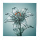 Ein bezauberndes Bild einer majestätischen Glaslilie, durchsichtige Blütenblätter, die in lebhaften Farbtönen schimmern. Die Lilie steht hoch und anmutig vor einem neutralen Hintergrund, ihre zarte Form wird durch die aufwändigen Details des Glaswerks unterstrichen. Das Bild ruft ein Gefühl der Gelassenheit und Schönheit hervor und zeigt die Kunst des Glasbläserns.