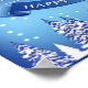 Wünschen Sie Ihrem Liebsten ein frohes Weihnachtsfest & Happy neues Jahr mit diesem schönen blauen, goldenen & weißen Poster. Es bietet schöne schneebedeckte Bäume in der glitzernden sternbeleuchteten Nacht und sehr schöne goldene Weihnachtsglocken mit blauem Bogen.