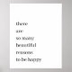 Einfaches, stilvolles, individuelles Zitat-Kunstdesign "es gibt so viele schöne Gründe, glücklich zu sein". Der Text, in einer modernen minimalistischen Typografie, kann leicht mit Ihrem eigenen Text und Worten für das perfekte Geschenk oder Accessoire personalisiert werden! Ein wunderschönes und aufregendes Zitat, um positive Vibes zu motivieren und zu bringen und Glück zu verbreiten!