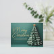 Herrliche goldene Schrift auf einem eleganten grünen Hintergrund und ein Weihnachtsbaum, der die einzigartige Illusion verleiht, 3D zu sehen, komplett mit einem hübschen Stern an der Spitze. Ein modernes handgeschriebenes Kratzen über Ihrem personalisierten Gruß auf einer modernen Postkarte ohne Foto.