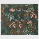 Schöne handgezeichnete Retro-Blume , tropischer Palmenwald und blühende Blumen in Linie Sketch-Stimmung nahtlos in Vintagem Design auf dunkelgrünem Hintergrund