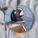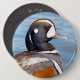 Schöne Harlequin-Ente am Felsen Button