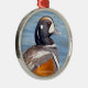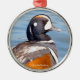 Schöne Harlequin-Ente am Felsen Ornament Aus Metall