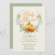 Moderne Herbstkürbis Kinderdusche Einladung mit einem schönen, grünen Kranz mit zwei Kürbissen & tänzerischen Blume mit moderner Typografie. Perfekt für eine Mädchendusche, eine Babydusche oder eine geschlechtsneutrale Babydusche für eine Herbstdusche.