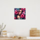 Poster mit einer hispanischen oder Latina Frau mit hübschen rosa und blauen Blumen im Haar. Atemberaubende digitale Kunst.