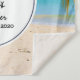 Ein Hochzeitsgürtel mit einer idyllischen tropischen Strandlandschaft. Türkisblaues kristallklares Wasser und ein sanfter brauner Sandstrand. Einige Blätter aus Palmen hängen von oben herab. Ein altes Holzboot sitzt am Strand. Eine ruhige und friedliche Landschaft.