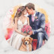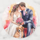 Schönes Wedding Couple Kissing mit einem lustigen kleinen Hund.