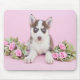 Schöne Husky-Welpe mit rosa Rosen Mousepad