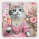 Schöne Katze in rosa Kleid mit Perlen Quadratischer Aufkleber