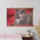 Schöne Katze mit rotem Hintergrund zum Entspannen Wandteppich Mit Holzrahmen