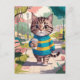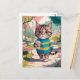 Schöne Katze Wandern im Park mit Kaffee Postkarte