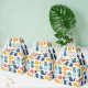 Schöne kawaii Katzen, spielen mit weißem Spielzeug Hintergrund, flache Farbmuster, Sommerdesign, minimalistischer Stil