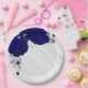 Schöne königsblaue Blumen silbergrauer Marmor Pappteller