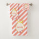 Set mit Handtuch und wunderschönen Kronen und rosa Blume mit diagonalen Korallen und weißen Streifen im Hintergrund. Text-MAMA kann angepasst werden.