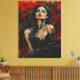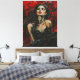 Dieses Kunstwerk ist eine Feier von Schönheit, Anmut und zeitloser Eleganz. Die geschlossenen Augen lassen einen Augenblick der Introspektion oder ruhiger Kontemplation vermuten und laden die Zuschauer ein, die innere Ausstrahlung der Dame zu schätzen. Die Kombination von Elementen - die Merkmale der Dame, der rote Hintergrund und das fließende schwarze Haar - verschmelzen zu einer visuellen Symphonie und machen diese Leinwand zu einer bemerkenswerten Ergänzung zu jedem Raum.