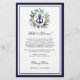 Rustikales Hochzeitsdesign am Strand, das nautische Elemente (Marinebanker, Knoten, Seestern) mit einem einzigartigen und originellen Aquarellkranz eukalyptus-Blätter und Grünpflanzen kombiniert. Die Monogramme von Bride und Groom. Navy-Schrift. Ideal für Hochzeiten am Strand, Hochzeiten im Wassersport, Hochzeit in Urlaubsort, Hochzeiten im Sommer, Hochzeiten im rustikalen Stil.