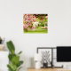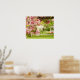 Schöne Landschaft mit blühendem Kirschbaum in Poster
