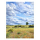 Eine malerische Landschaft, die farbenfrohe Wildblumen unter einem Himmel mit dramatischen weißen Wolken zeigt. Die landschaftliche Aussicht vermittelt ein Gefühl der Ruhe und Naturschönheit, perfekt für Naturliebhaber.