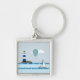 Metal-Schlüsselanhänger zur Anpassung an eine nautische Szene eines Segelbootes in einem welligen Ozean mit einem Heißluftballon über schwimmend an einem Leuchtturm vorbei.