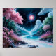 Schöne Landschaft mit rosa Kirschblüten Poster