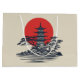 Schöne japanische Gartenlandschaft mit kleinem Teich, schönen Bäumen, Felsen und orientalischen Stil Pagode Dekoration bei Sonnenaufgang. Sie können die Hintergrundfarbe leicht ändern. Es ist einfach, es anzupassen, indem man Namen/Datum/Text usw. ändert.