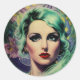 Schöne Lavender & Green Retro Style Space Frau Runder Aufkleber