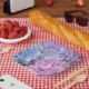 Schöne Lila, blaue, rosa Hydrangea-Blume Pappteller