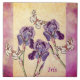 Schöne lila Vintage botanische Illustration der Iris-Blumen und des Schmetterlinges der reizenden lila Iris-Blumen. Ich habe einen hübschen weißen Schmetterling und einen antiken Effekthintergrund addiert. Entworfen durch Lerchen-Entwürfe
