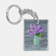 Schöne Lilacs im rustikalen Mason Jar Schlüsselanhänger