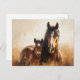 Niedliche Senf-Stute und Foal-Digitalmalerei in Erdtönen.