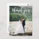 Elegante, stilvolle und skurrile vertikale Karte, um Ihren Gästen zu danken, dass sie Teil Ihres Hochzeitstages sind. Dieses anpassbare Dankeschön-Postcard bietet ein weißes, modernes Kalligraphie-Overlay. Dieses Design ist auch in anderen Karten erhältlich.