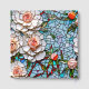 Eine wunderschöne Illustration, die ein Mosaik aus Buntglas und Fliesen aus Korallenbänken mit blauen und anderen farbenfrohen Akzenten nachahmt. Dieses elegante Gästebuch hat eine wunderschöne Vintage Ästhetik. Braut und Groom Name und Hochzeitstag in Rose Gold Metall Druck.