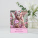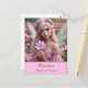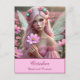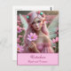Eine wunderschöne rosa haarige Fee mit schimmernden Flügeln mit einem hübschen rosa Kleid und opalem Schmuck hält einen Single Kosmos, während stehend in einem Feld des Kosmos.