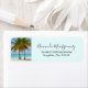 Adressierung Labels mit einem schönen und ruhigen Foto von 2 Palmen unter einem hellblauen Himmel. Stehend an einem abgeschiedenen tropischen Strand mit türkisblauem Wasser.