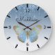 Schöne Personalisierte Blauer Schmetterling Große Große Wanduhr