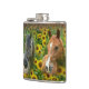 Schöne Pferde im Feld der Sonnenblumen Flachmann