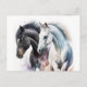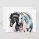 Postkarte mit einem Paar schwarz-weiße Pferde, die zusammen hängen. Illustriert mit Aquarellen.