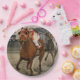 Schöne Pferdeschlittenbesitzer im klassischen Renn Pappteller