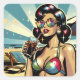 Schöne Pinup Frau mit Cola am Strand Quadratischer Aufkleber