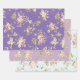 3 Bögen Geschenkpapier mit schönen alten Rosen auf Ranken in Lila- und Blautönen. Perfekt für eine Kleine Wildblume ist auf dem Weg oder eine Baby In Bloom Babyparty. Schöne Blumenmuster in sanften Pastellfarben, Gesamtdesign.