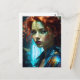 Die künstlerische Arbeit einer wunderschönen, rötlich gekleideten Frau mit einem funkelnd blauen Shirt und einer temporären, grünen Efeu-Tätowierung auf ihrem Gesicht