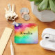 Ein Schlüsselanhänger mit Aquarellfarben mit Farben des Regenbogens.