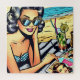 Schöne Retro Lady am Strand mit Cocktail Puzzle