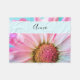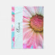 Blanket mit einer lebhaften, rosa und weißen Blume. Das nahe Foto dieser bezaubernden Blume nimmt wirklich Ihre Aufmerksamkeit auf sich. Ein pastellblauer Streifen mit Ihrem personalisierten Text.