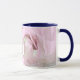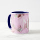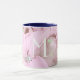 Eine hübsche Tasse mit einer Blume nah. Ideal für den Rose Morgentisch. Überschreiben Sie das M mit Ihrem Initial.