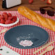 Schöne rosa Blume und Blätter der Marine Pappteller