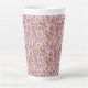 Ein lebendiges Blumenmuster mit einem großen, staubigen, rosafarbenen Set und zarten Blätter. Jede Blume zeichnet sich durch detaillierte Blätter und ein reichhaltiges, verziertes Zentrum aus, das ein Gefühl von Tiefe und Bewegung schafft